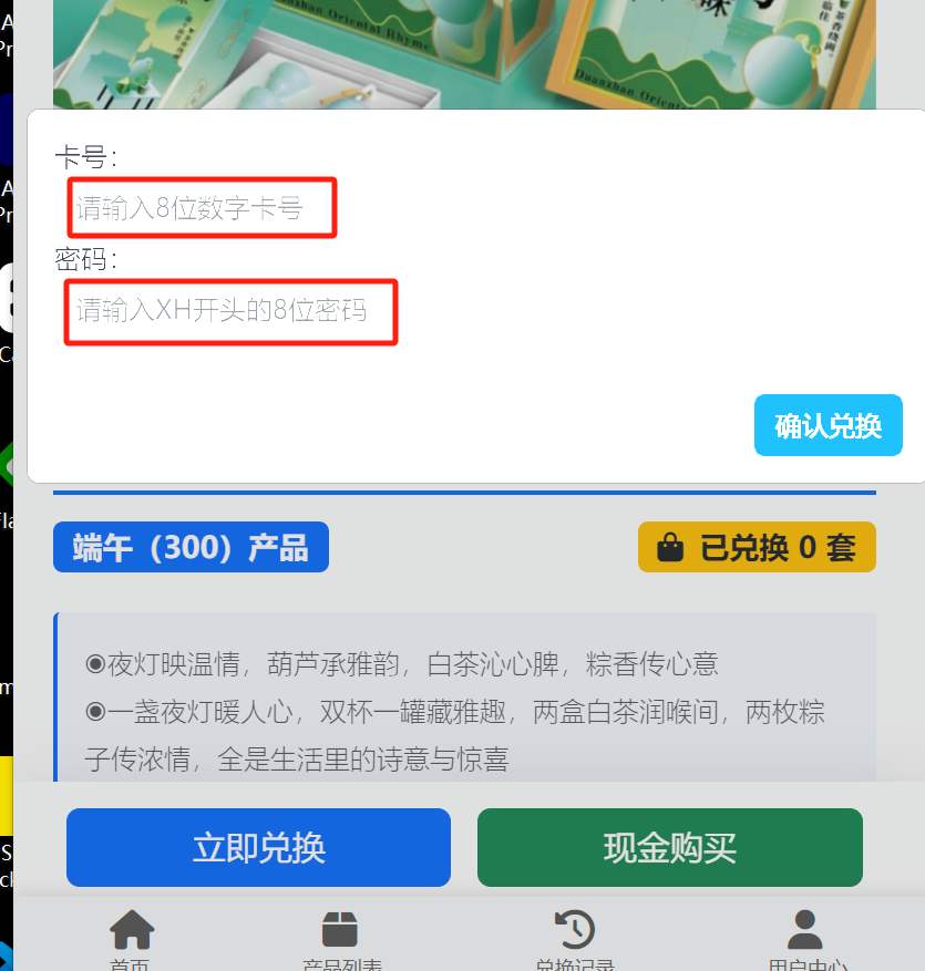③ 点击【立即兑换】,输入兑换卡号和密码,填写收货地址,等待发货或者同城送货上门;