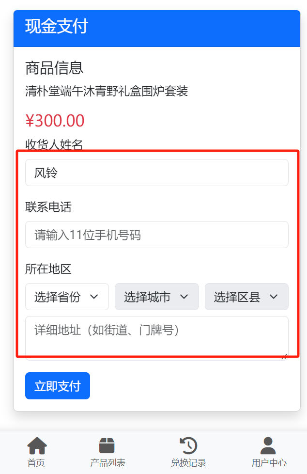 ③ 点击【现金购买】,输入收货地址,然后点击立即支付,支持成功后关注公众号二维码,有发货通知,等待发货或者同城送货上门;
